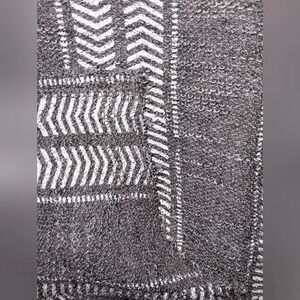 Introducing the U.S. Vintage Dark Gray & White Vertical Stripe Baja Hoodie in a size Medium! This hoodie boasts a unique worn distressed look with fraying material all over, giving it a stylishly rugged appearance. It's important to note that this hoodie was intentionally designed to have this worn look. Not only does it look cool, but it's also lined, making it even cozier than your average hoodie. With measurements of 21" from armpit to armpit and a length of 25", it's the perfect fit for your casual and comfortable style.