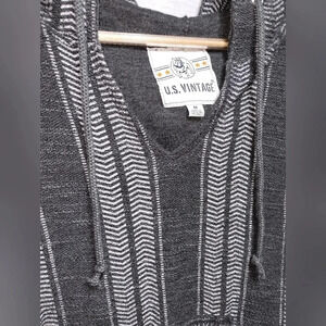 U.S. Vintage Dark Gray & White Vertical Stripe Baja Hoodie size Medium