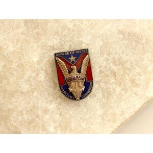 US WW2 1944 Smith & Wesson Maritine Comission Award of Merit Sterling Silver 925 Brooch Pin. Red and blue enameled. Enclosure is via a sliding rod.
