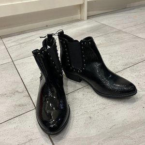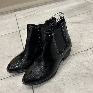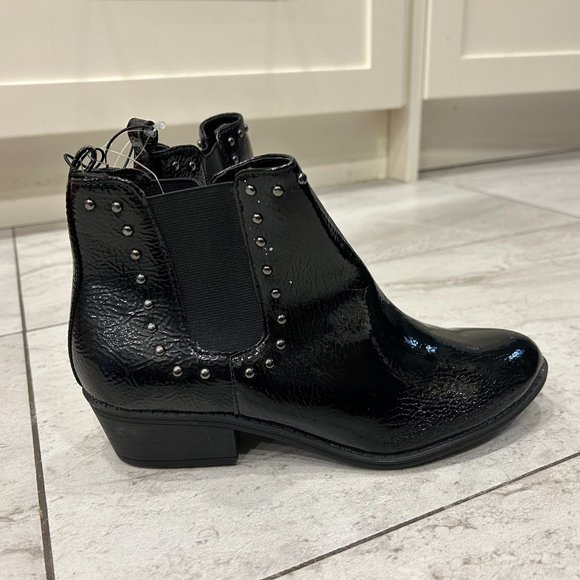 US7 George Blank Shine Leather, Pull-On Studded Ankle Boot NEW, 1in Block Heel