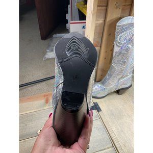 US9 Silver Sequin Faux Leather Party Western Boots NEW with minor marks