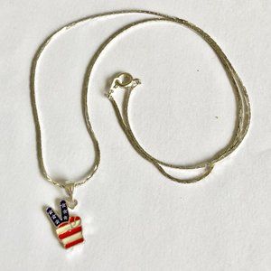 USA American Flag Necklace Patriotic July 4th Peace Sign Groovy Silver Plated