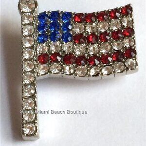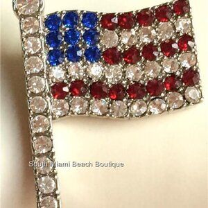 USA American Flag Pin Brooch Patriotic July 4th US Crystal Silver Plated 1.5"