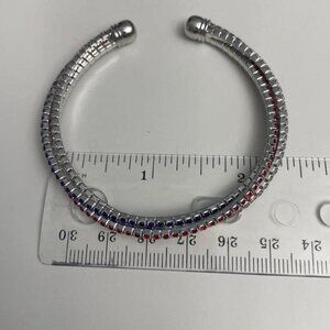 Red, Blue, and White Rhinestones: Adorned with sparkling red, blue, and white rhinestone crystals, this bracelet beautifully represents the colors of the USA flag. The rhinestones are meticulously set to catch the light from every angle, adding a brilliant sparkle to your wrist.