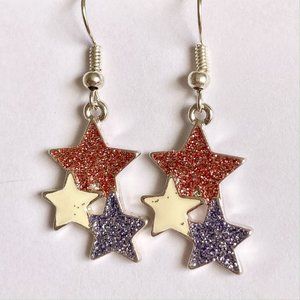 USA American Star Earrings Silver Plated 18" Patriotic July 4th Independence Day