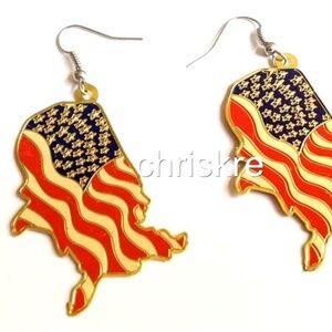 USA American US Flag Earrings Patriotic July 4th Gold Plated Brass Country Map