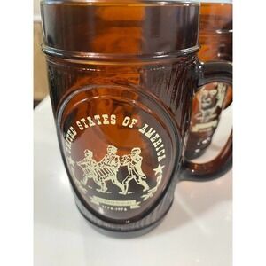 USA Bicentennial 1776-1976 Amber color Large 5 1/2" tall Glass Mugs vintage