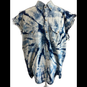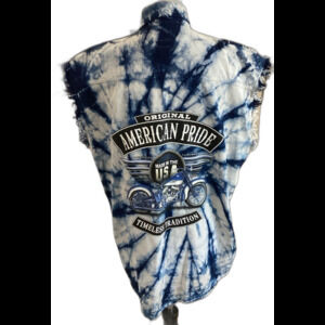 American Pride Timeless Tradition Motorcycle Cutoff Tye-Dyed Button Down Shirt XL. Please reference attached pictures for graphics, style, colors, condition and approximate sizing.
