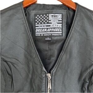 USA Bikers Dream Apparel Black Front Zip Motorcycle Leather Vest