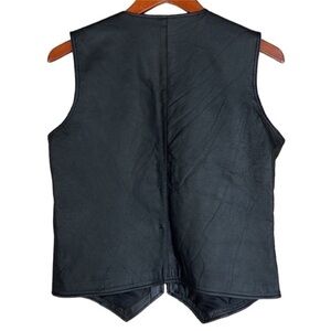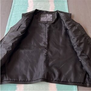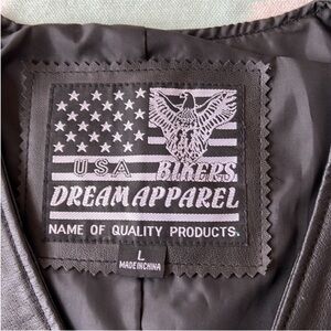USA Bikers Dream Apparel, Black, Front Zip, Motorcycle Leather Vest. Full front zip closure. Classic, Moto, Western, Rodeo, Boho Festival vibes. Size large. See photos for measurements to ensure fit.