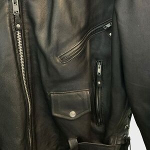 π SEO Tags: vintage leather motorcycle jacket, USA Bikers Dream, mens biker jacket size 58, genuine leather moto jacket, retro biker gear, zip out liner leather jacket, Harley style coat