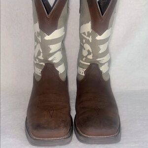 Step into the spirit of the West with USA Durango's cowboy boots, featuring a rich brown leather base accented by striking white inlay patterns. These boots boast a square toe design and a classic western silhouette, making them a standout choice for any occasion.
