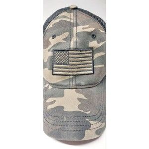 USA Flag Patch Camo Baseball Cap Hat Mens Green Brown Adjustable Soft Mesh Vent