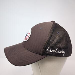 USA Flag Snapback Trucker Hat Brown One Size Mesh Back Black Clover
