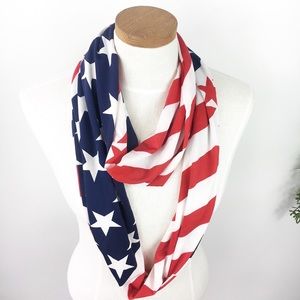 Gorgeous Patriotic American Flag Infinity Scarf! Lightweight and Silky! Dual sided pattern. Red, White and Blue!