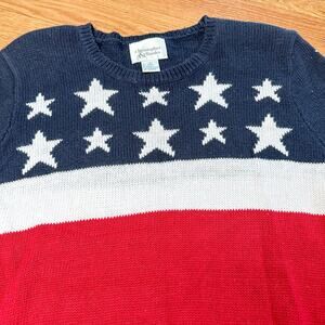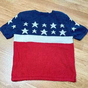 USA Flag Sweater Short Sleeve Vintage Fourth of July Sweater Cotton Blend