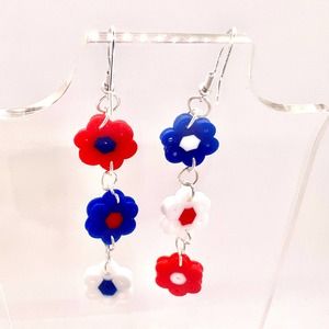 USA Flower Earrings - 4th of July Earrings - American Earrings - Patriotic Earri