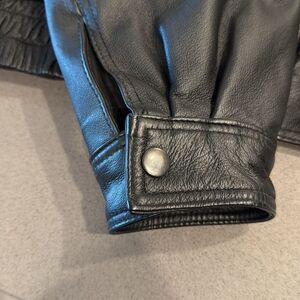 Excellent gently used condition. This American Leather Men's Motorcycle Jacket features a vintage style with a USA flag and eagle design. USA down both sleeves. Made of leather, missing the polyester lining, it has a stand-up collar, zip closure, snap button wrist closure and multiple pockets. Suitable for all seasons, it is ideal for travel or casual wear. The jacket is accented with embroidery, and leather embodying a biker and American theme. Please note there is no size tag.