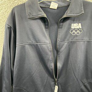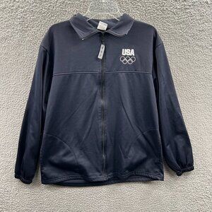 USA Olympic Rings Mens Fleece Jacket Large Black Full Zip Long Sleeve Pockets