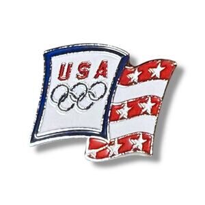 USA Olympics Flag Pin Silver Tone Red White Blue Collectible Lapel Pin