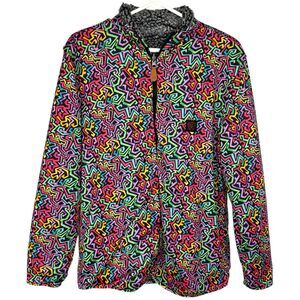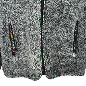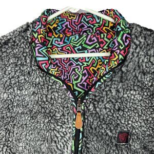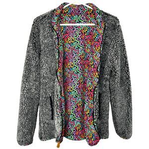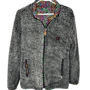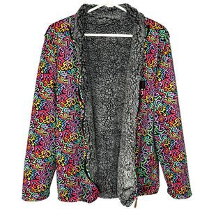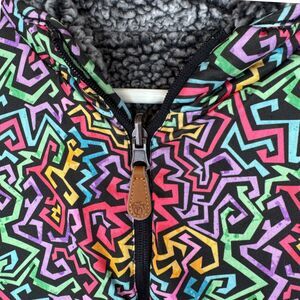 USA Palm Reversible sherpa & colorful funky art pattern jacket 90s style Size XS