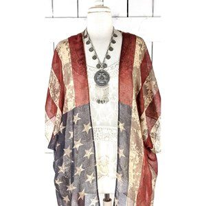 USA Patriotic American flag sheer gauzy kimono cardigan cover up/USA/Fourth of July/Memorial Day/Veterans Day