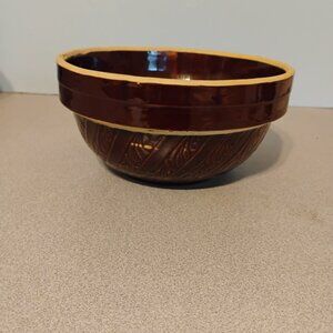 Vintage 1960s USA Pottery round bowl. Bowl is brown, measures 8" in diameter, 4" high, in good vintage condition, a couple of tiny nicks