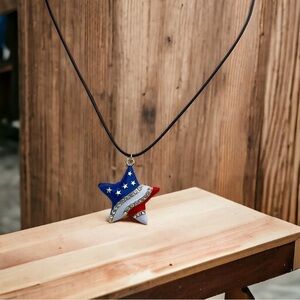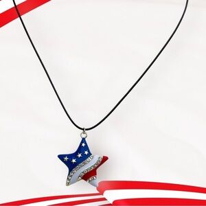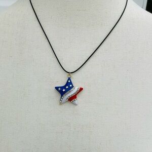 USA Rhinestone Embellished Patriotic Red White & Blue Star Pendant Necklace