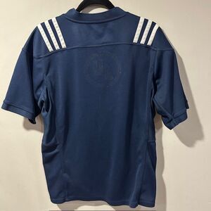 This rugby jersey has been well worn and has the missing UL decal on the back from washing. Size tag is also not readable, so use measurements for size approximation. Still a great looking jersey!