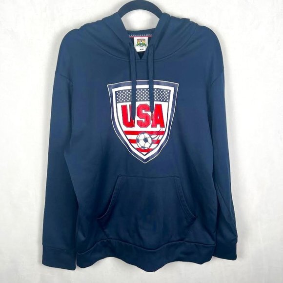 USA Soccer Team Blue Striker Pullover Hoodie Kangaroo Pockets, Athletic, Size M