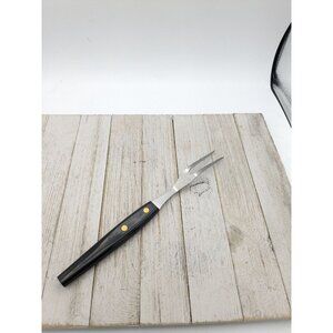 USA Stainless Steel Meat Fork 2 Wide Prong 10 1/3" Black Handle Vintage