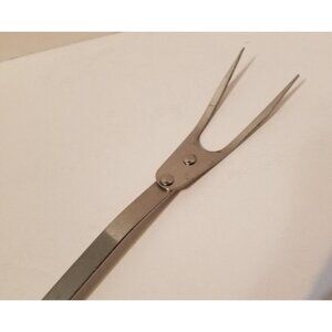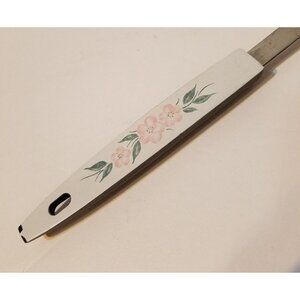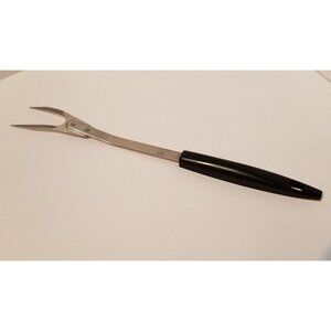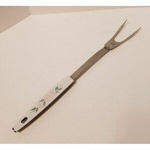 USA Stainless Steel Meat Fork 2 Wide Prong 12" Pink Flowers Handle Vintage