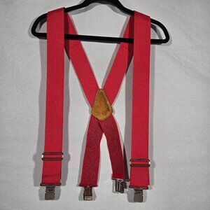 USA Vintage 70's Red CANVAS Straps TOP-GRAIN Leather CLIPS 46" X 2" Suspenders.