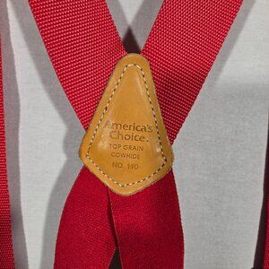 USA Vintage AMERICA'S CHOICE 1970 Eclectic Grandpa Gorpcore Outdoor Streetwear Utility RED Canvas-Nylon Straps SILVER METALIC Clips TAN Top Grain COWHIDE No.110 Heavy Duty Robust Rugged Style SUSPENDERS.