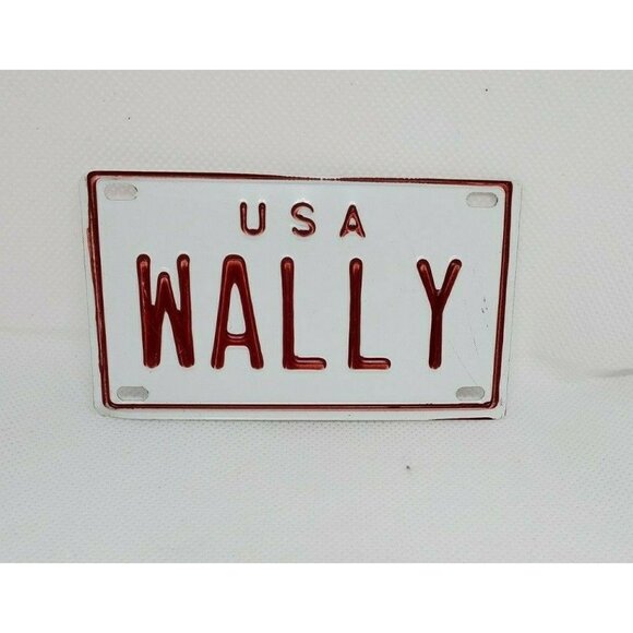Customize your ride with this Wally personalized mini license plate! Featuring a white and red design, this collectible bicycle plate adds a unique touch to any bike. Perfect for personalization, decoration, or as a fun keepsake for collectors.