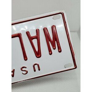 Wally mini license plate, personalized bike plate, collectible bicycle tag, white red mini plate, USA bike license, custom name plate, vintage bike accessory, novelty mini tag, cycling memorabilia, retro license plate