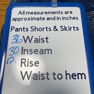 USA Works Men’s Jeans Size 36. The are no interior labels size determined my measuring tape. See photos small snag by side seam. See photos for measurements. All items come from a smoke free pet friendly environment.
