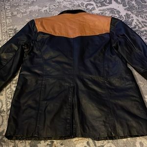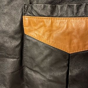 USA leather jacket, men’s L, real leather, black and tan, very good condition