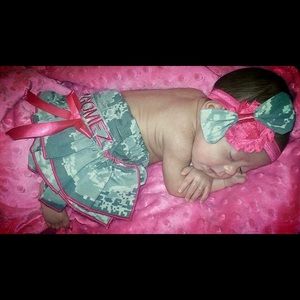 USAF Newborn Baby Diaper Ruffle And head bow made from uniform materials with name tag “Gomez”