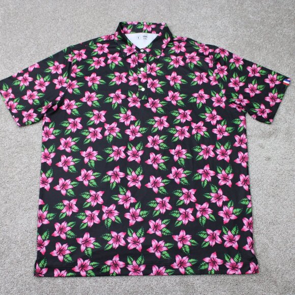 USAG You Suck at Golf Polo Shirt Mens 2XL XXL Black/Pink Floral Poly Stretch S/S