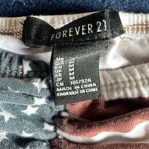 Gently used condition, Forever 21, womens size Medium (M), red, navy blue, and white, cream colored, bikini bandeau swim top. Slightly faded, vintage appearance. Great for swimming, playing on the beach, surfing, paddle boarding, rafting, playing volleyball, but especially tanning or laying out.