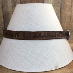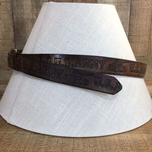 US Army Vintage Brown Leather Buckle Belt Mens One Size