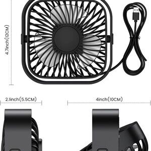 Mini desktop fan: Its main features include USB power supply, 3-speed wind settings, 360 rotation, and can be powered by devices with USB interfaces such as computers and adapters. You can repeatedly press the button on the back of the fan to switch from low, medium, high to off. The first stage: 3.9m/s. Class 2: 4.9m/s. Class 3: 5.9m/s. Even in places without air conditioning, it can keep you cool