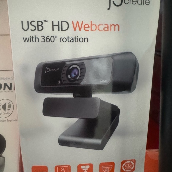 Experience high-quality video calls with the USB HD Webcam. Featuring 360° rotation and a sleek black design, this webcam is perfect for any setup.