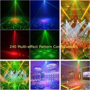 Description from the manufacturer: "240 Multi-Effect Pattern Combinations.. New Upgraded 3-in-1 Pattern & LED & Aurora disco lights for parties have 7 background lights and 2 beam combinations." -- New in OPEN box, opened for photos. NOT used more than 10 minutes, since I don't like the randomness of the patterns. -- Small and lightweight, here’s a USB powered party light with many remote control options. There are multiple buttons and 240 led and laser configurations, but you cannot select just one single pattern, each one continuously changes automatically. -- For example, in the video, I am-not pressing any buttons. Unfortunately i can only show you 15 seconds of video and it’s of the Default setting when powered on. This unit also has a sound activated feature, but I’ve never tried it. This works perfectly, but also I would like you to know that it is not super bright, and will be best when used in darker, low light environments. 💡 Selling because i just don’t use it, and like I was saying, the patterns are too short and random for my liking. Anyway, please ask any questions you may have, and thanks for looking! 👀 >>> TECHNICAL DETAILS FOLLOW >>>> Item Dimensions: 3.74in X 2.95in X 2.36in - Package Content: 1X led party light, 1X Remote Control. 1X 72-inch Micro USB Cable, 1X Bracket. 2X Screws, 1X User Manual - - - Please do not look directly at the lights. --The lights have 5 working modes: Automatic, Sound activated, Northern lights, Pattern lights, and LED lights.