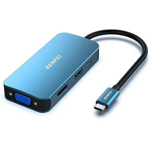 Benfei USB Type-C to HDMI+DisplayPort+VGA Adapter, 4K Support, Compatible with Laptops and TVs