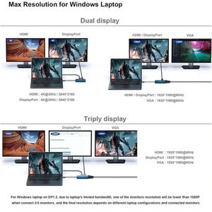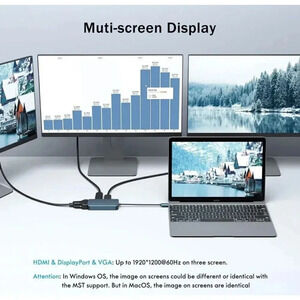 USB Type-C to HDMI+DisplayPort+VGA Adapter 4K Support Compatible Laptops TV’s