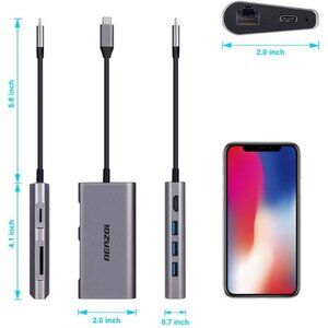DEPZOL USB C Hub, Type C Adapter 8-in-1 Dock to HDMI 4K, Gigabit Ethernet RJ45, PD Power Delivery, 3 USB 3.0 Ports and TF SD Card Readers for MacBook Pro 2018/2017/2016 and More USB-C Devices