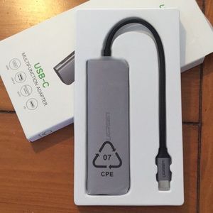 NEW IN BOX USB-C multifunction adapter adds 2 USB3.0 ports, 1-HDMI port, 1-TF slot and 1- SD slot, supports fast charging. Supports Mac OS/Windows/Linux. Ordered wrong one so still New In Box and never used.