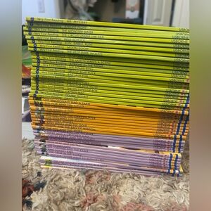 USBORNE first readers library set ! Currently have 48 out of the 50 , will update if I locate the last 2 (missing 1 of the very first reading set in green, and 1 of the middle readers in orange) . Excellent condition otherwise !